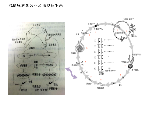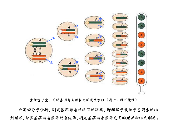 粗糙脈孢霉屬于真菌中的子囊菌綱,是低等的真核生物。每一菌絲細(xì)胞中含有幾十個細(xì)胞核。是遺傳分析好材料:子囊孢子是單倍體,其表型直接反應(yīng)其基因型;一次只分析一個減數(shù)分裂的產(chǎn)物;體積小,易培養(yǎng),繁殖快,一次雜交就能產(chǎn)生大量的后代,便于獲得正確的統(tǒng)計學(xué)結(jié)果;能進(jìn)行有性生殖,其染色體的結(jié)構(gòu)和功能類似于高等動植物;更加重要的是,子囊孢子在子囊中的線性排列順序與減數(shù)分裂中期染色體在赤道板兩側(cè)的排列順序相同,這就是粗糙脈孢霉成為了遺傳分析的好材料。