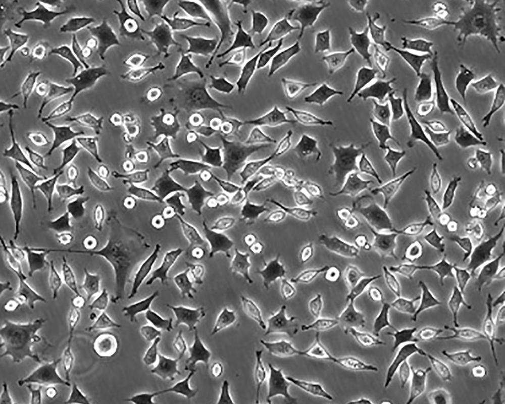 如果細胞密度達80%-90%,即可進行傳代培養。1. 棄去培養上清,用不含鈣、鎂離子的PBS潤洗細胞1-2次。2. 加2ml消化液(0.25%Trypsin-0.53mM EDTA)于培養瓶中,置于37℃培養箱中消化1-2分鐘,然后在顯微鏡下觀察細胞消化情況,若細胞大部分變圓并脫落,迅速拿回操作臺,輕敲幾下培養瓶后加少量培養基終止消化。3. 按6-8ml/瓶補加培養基,輕輕打勻后吸出,在1000RPM條件下離心4分鐘,棄去上清液,補加1-2mL培養液后吹勻。4. 將細胞懸液按1:2到1:5的比例分到新的含8ml培養基的新皿中或者瓶中。 |