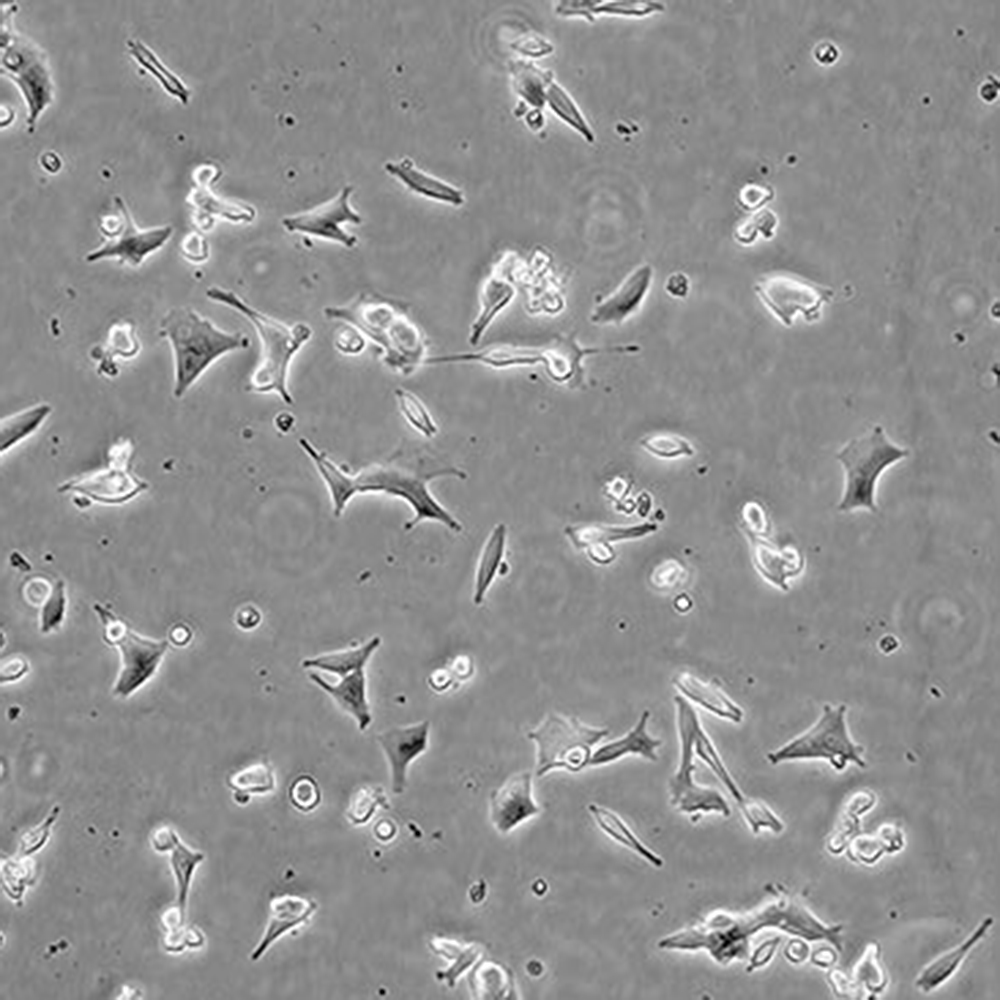如果細(xì)胞密度達(dá)80%-90%,即可進(jìn)行傳代培養(yǎng)。1. 棄去培養(yǎng)上清,用不含鈣、鎂離子的PBS潤洗細(xì)胞1-2次。2. 加2ml消化液(0.25%Trypsin-0.53mM EDTA)于培養(yǎng)瓶中,置于37℃培養(yǎng)箱中消化1-2分鐘,然后在顯微鏡下觀察細(xì)胞消化情況,若細(xì)胞大部分變圓并脫落,迅速拿回操作臺,輕敲幾下培養(yǎng)瓶后加少量培養(yǎng)基終止消化。3. 按6-8ml/瓶補(bǔ)加培養(yǎng)基,輕輕打勻后吸出,在1000RPM條件下離心4分鐘,棄去上清液,補(bǔ)加1-2mL培養(yǎng)液后吹勻。4. 將細(xì)胞懸液按1:2到1:5的比例分到新的含8ml培養(yǎng)基的新皿中或者瓶中。 |