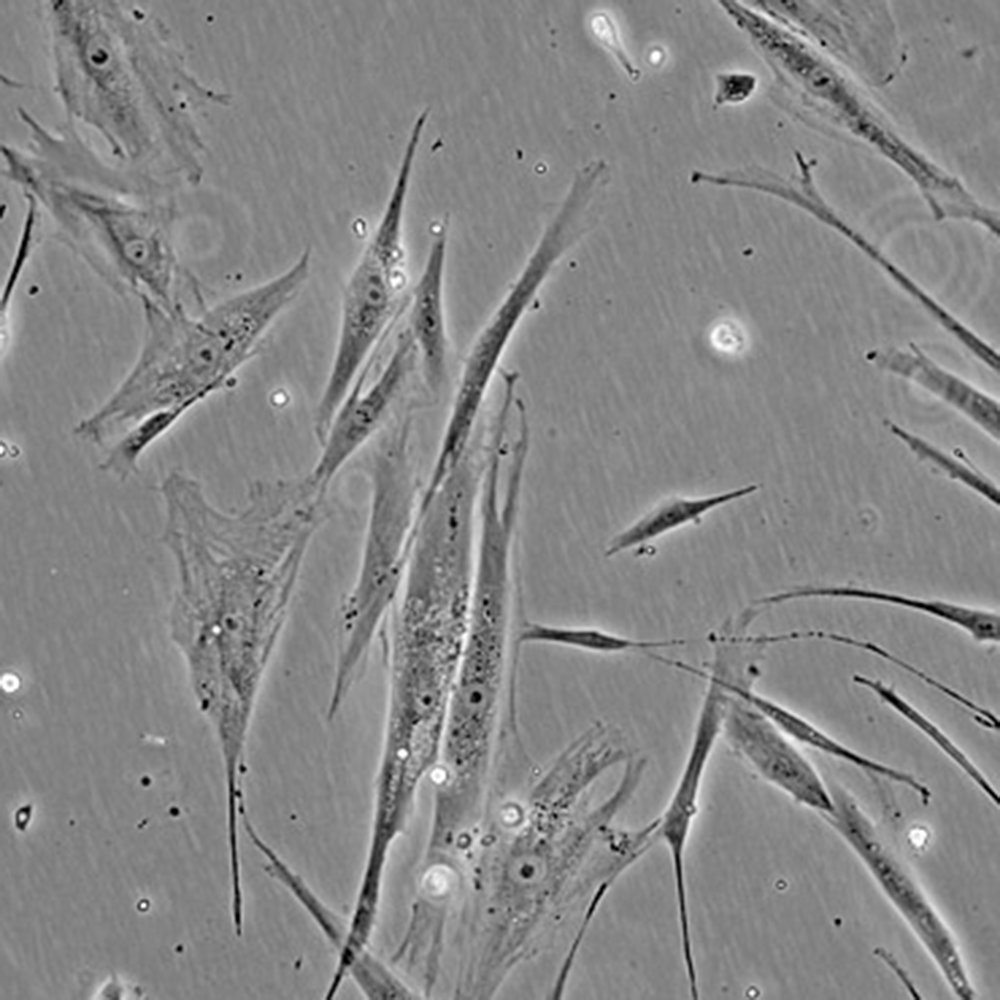 如果細胞密度達80%-90%,即可進行傳代培養。1. 棄去培養上清,用不含鈣、鎂離子的PBS潤洗細胞1-2次。2. 加2ml消化液(0.25%Trypsin-0.53mM EDTA)于培養瓶中,置于37℃培養箱中消化1-2分鐘,然后在顯微鏡下觀察細胞消化情況,若細胞大部分變圓并脫落,迅速拿回操作臺,輕敲幾下培養瓶后加少量培養基終止消化。3. 按6-8ml/瓶補加培養基,輕輕打勻后吸出,在1000RPM條件下離心4分鐘,棄去上清液,補加1-2mL培養液后吹勻。4. 將細胞懸液按1:2到1:5的比例分到新的含8ml培養基的新皿中或者瓶中。 |
