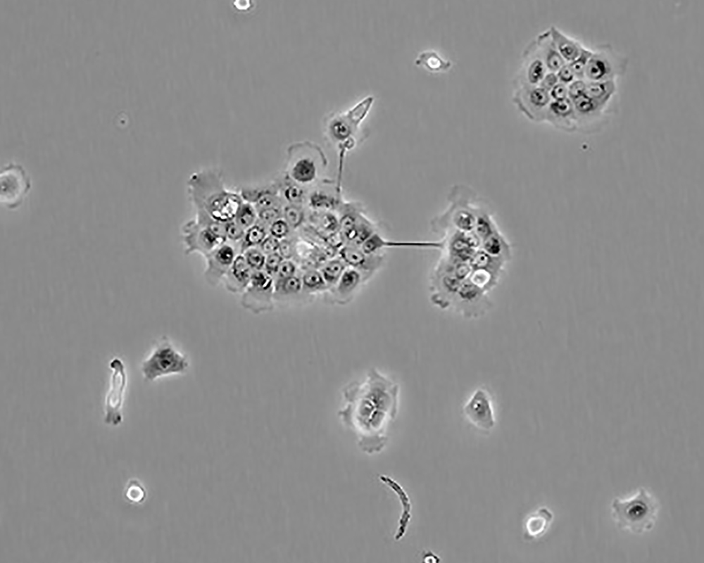 如果細胞密度達80%-90%,即可進行傳代培養。1. 棄去培養上清,用不含鈣、鎂離子的PBS潤洗細胞1-2次。2. 加2ml消化液(0.25%Trypsin-0.53mM EDTA)于培養瓶中,置于37℃培養箱中消化1-2分鐘,然后在顯微鏡下觀察細胞消化情況,若細胞大部分變圓并脫落,迅速拿回操作臺,輕敲幾下培養瓶后加少量培養基終止消化。3. 按6-8ml/瓶補加培養基,輕輕打勻后吸出,在1000RPM條件下離心4分鐘,棄去上清液,補加1-2mL培養液后吹勻。4. 將細胞懸液按1:2到1:5的比例分到新的含8ml培養基的新皿中或者瓶中 |