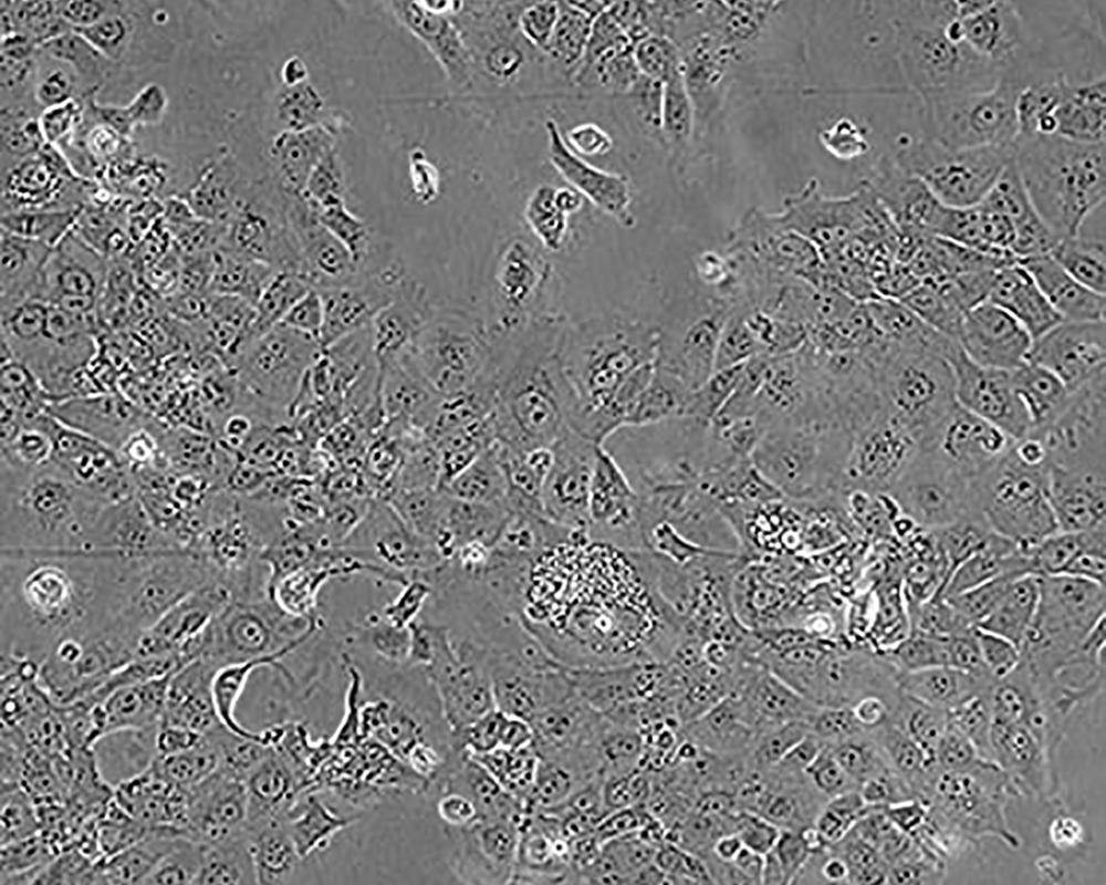 如果細(xì)胞密度達(dá)80%-90%,即可進(jìn)行傳代培養(yǎng)。1. 棄去培養(yǎng)上清,用不含鈣、鎂離子的PBS潤(rùn)洗細(xì)胞1-2次。2. 加2ml消化液(0.25%Trypsin-0.53mM EDTA)于培養(yǎng)瓶中,置于37℃培養(yǎng)箱中消化1-2分鐘,然后在顯微鏡下觀察細(xì)胞消化情況,若細(xì)胞大部分變圓并脫落,迅速拿回操作臺(tái),輕敲幾下培養(yǎng)瓶后加少量培養(yǎng)基終止消化。3. 按6-8ml/瓶補(bǔ)加培養(yǎng)基,輕輕打勻后吸出,在1000RPM條件下離心4分鐘,棄去上清液,補(bǔ)加1-2mL培養(yǎng)液后吹勻。4. 將細(xì)胞懸液按1:2到1:5的比例分到新的含8ml培養(yǎng)基的新皿中或者瓶中 |