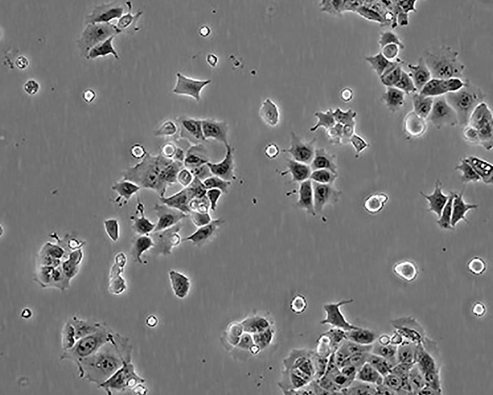 如果細胞密度達80%-90%,即可進行傳代培養(yǎng)。1. 棄去培養(yǎng)上清,用不含鈣、鎂離子的PBS潤洗細胞1-2次。2. 加2ml消化液(0.25%Trypsin-0.53mM EDTA)于培養(yǎng)瓶中,置于37℃培養(yǎng)箱中消化1-2分鐘,然后在顯微鏡下觀察細胞消化情況,若細胞大部分變圓并脫落,迅速拿回操作臺,輕敲幾下培養(yǎng)瓶后加少量培養(yǎng)基終止消化。3. 按6-8ml/瓶補加培養(yǎng)基,輕輕打勻后吸出,在1000RPM條件下離心4分鐘,棄去上清液,補加1-2mL培養(yǎng)液后吹勻。4. 將細胞懸液按1:2到1:5的比例分到新的含8ml培養(yǎng)基的新皿中或者瓶中 |